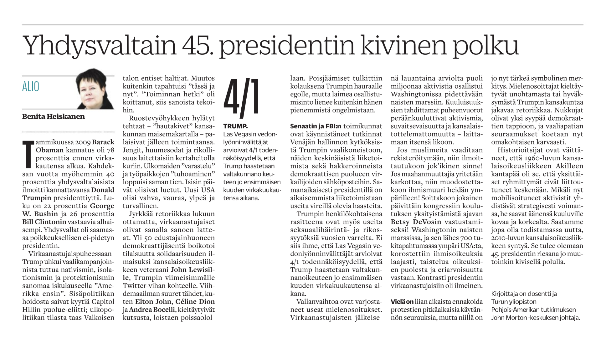 Yhdysvaltain 45. presidentin kivinen polku